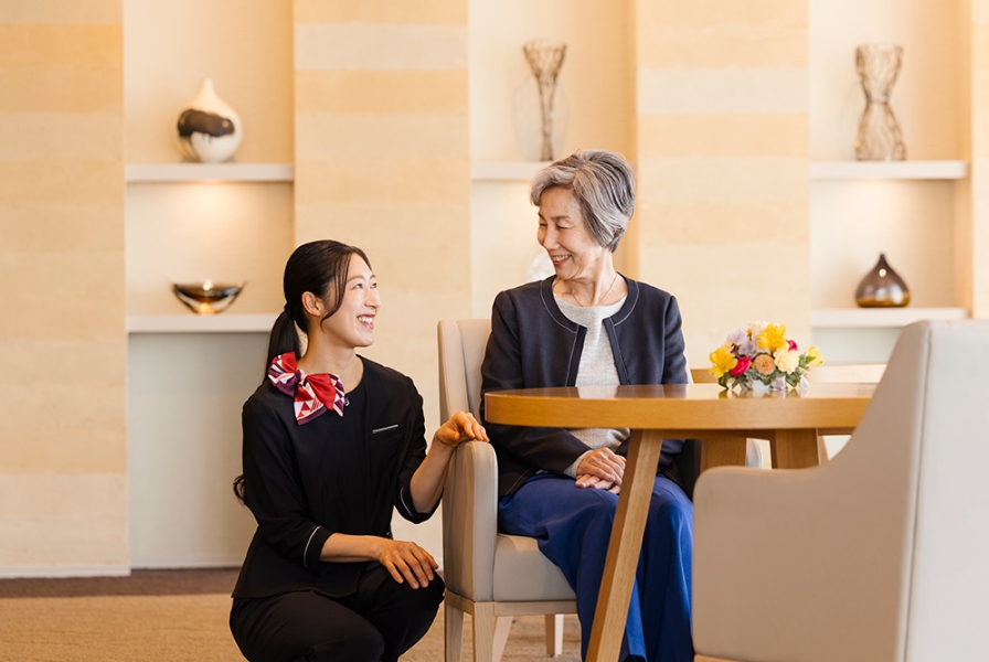 介護が必要になった場合は、それぞれの状況に応じた外部サービスやホームの有料サービスを利用して生活が継続できます。また、当社が運営する他ホームの介護居室に住みかえることができます。