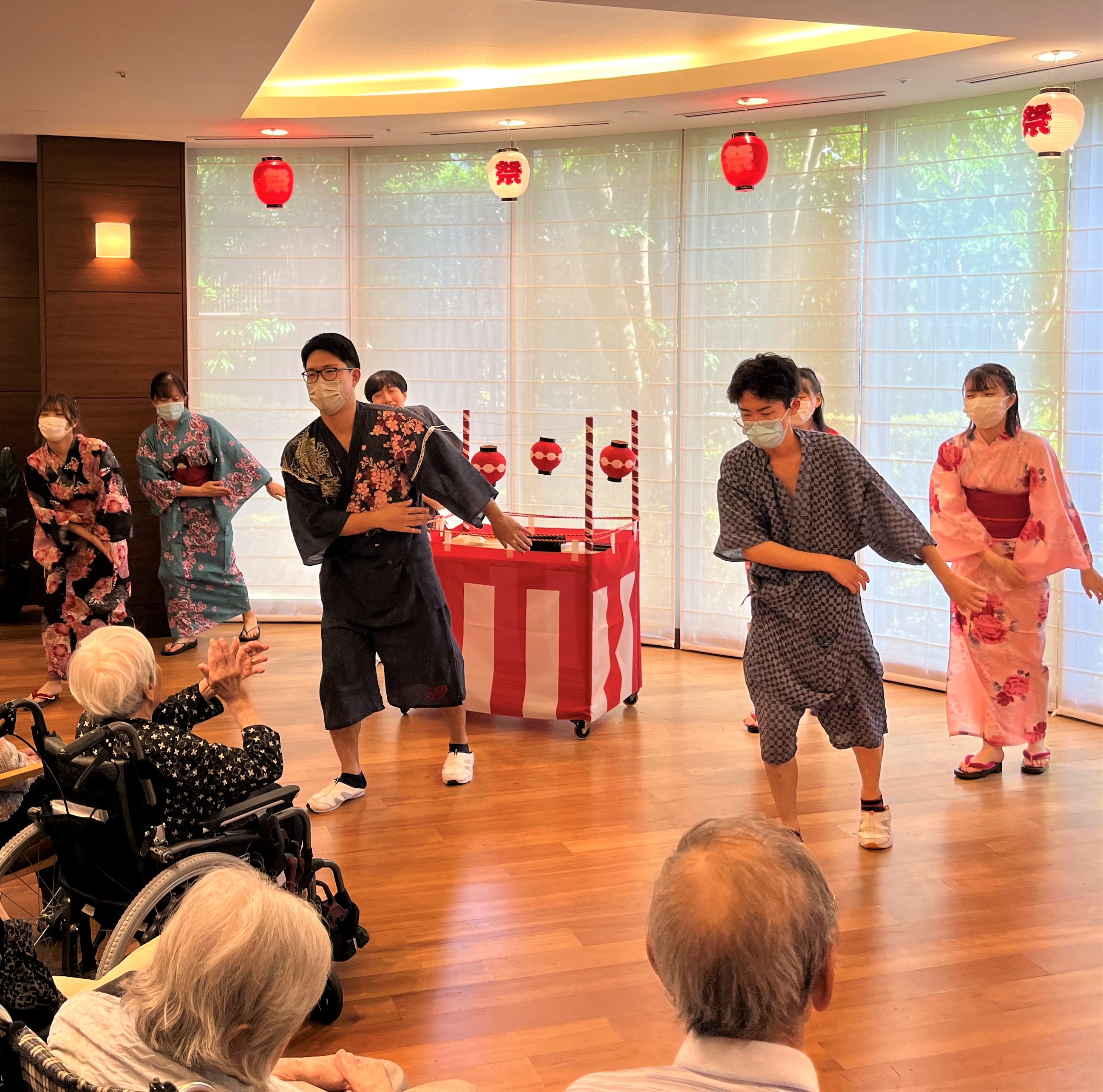 3年ぶりの音楽会。サックス奏者のスタッフで大盛り上がりのところ、ご入居者の飛び入りウクレレ演奏でさらに盛り上がった楽しいイベントなった。