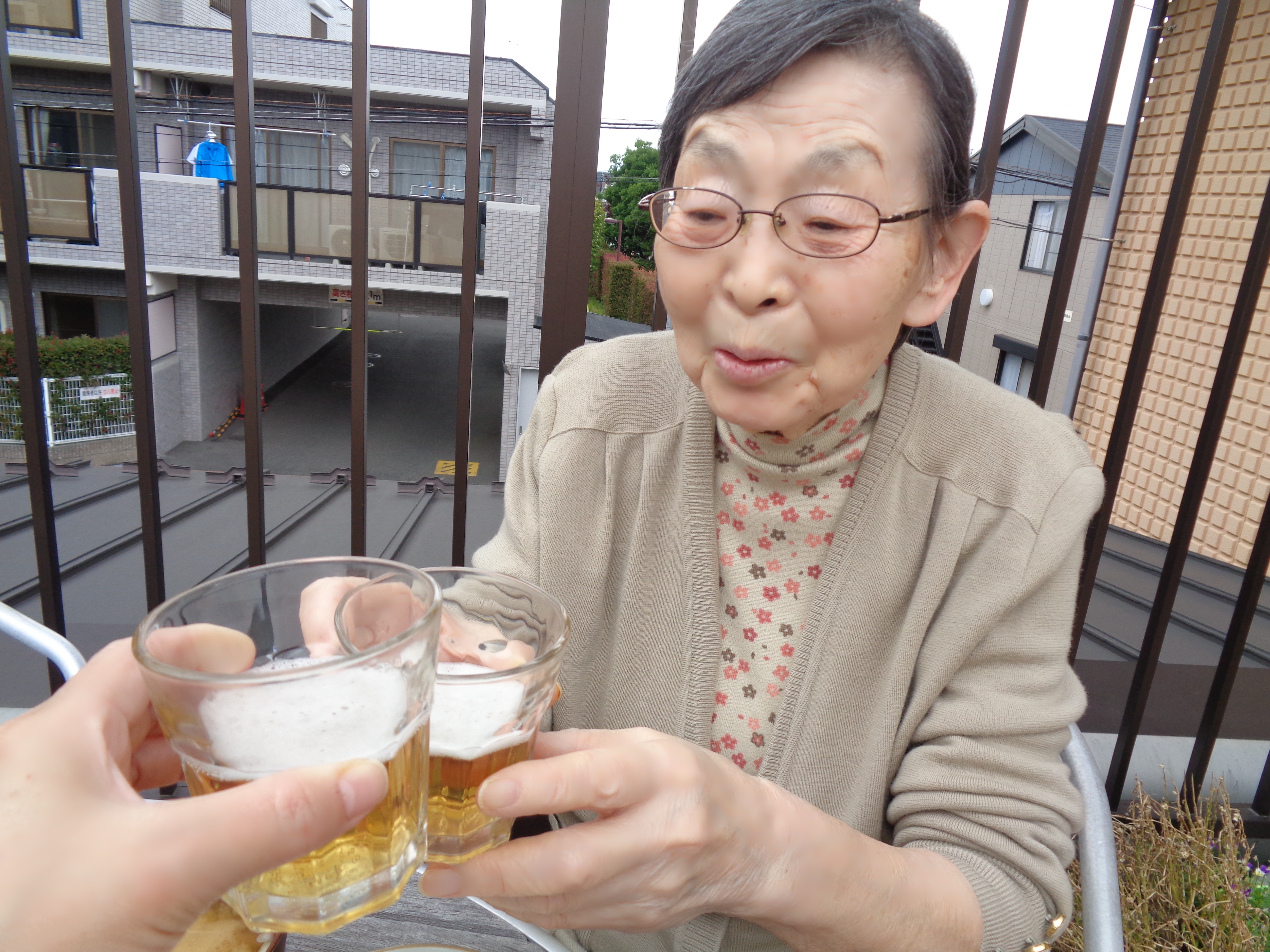 階段掃除をビールで労い