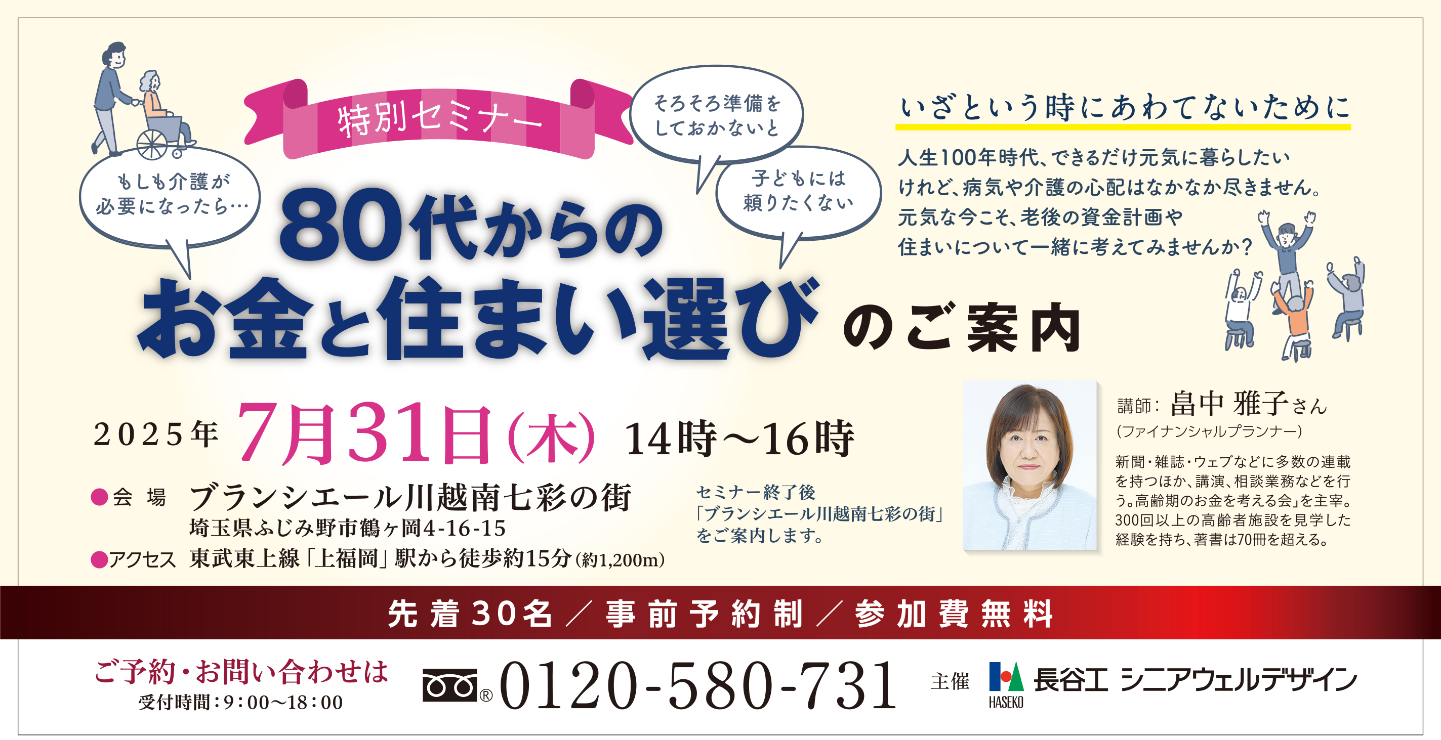 7/31 特別セミナー開催のご案内「80代からのお金と住まい選び」